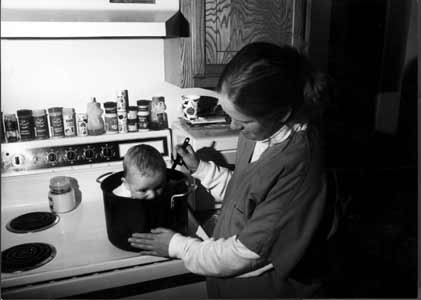 Cut up the chicken, wash and season with salt and pepper. Heat 1 cup oil in heavy skillet and fry chicken until brown. Remove chicken and put aside. Pour remaining oil into a large heavy pot for making a roux. A roux is made by stirring the flour into the oil from the chicken, cooking at a low heat until the flour is dark brown. After the roux is made, lower the heat and add all the chopped ingredients, except the green onions, garlic, and parsley. Cover and simmer until onions are clear, stirring occasionally. Add sliced andouille and chicken to roux mixture, cover and let simmer for about 1/2 hour. Stir often during this process. Keep heat low through this point. In a separate pot, bring the 6 cups of water to a boil. While waiting for water to boil, take Max and rinse it off really well. Be sure to scrub the neck and behind the ears. After water boils, turn heat off and let it cool, and when it's just warm enough, put Max in. Put heat on low and let simmer for 10 minutes. Take Max out, hang by legs from clothes line to dry. Pour the Max-flavored water, along with the garlic, parsley, and green onions to the chicken-andouille mixture. Increase heat until mixture begins to boil. Now lower heat, cover and let simmer for 1-1/2 to 2 hours. This is a very liquidy soup, and it is best when served over rice and it always tastes better the day after it's been cooked. For extra Max flavor: After gumbo is done cooking, let cool and take Max off the clothes line, placing him in the gumbo pot. Let it sit there overnight, the results will dazzle your tastebuds. |