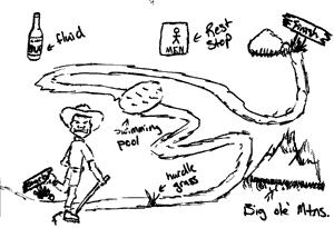 Jeff was all playing tough guy and he had to go into the back room of Blimpie to draw his map.